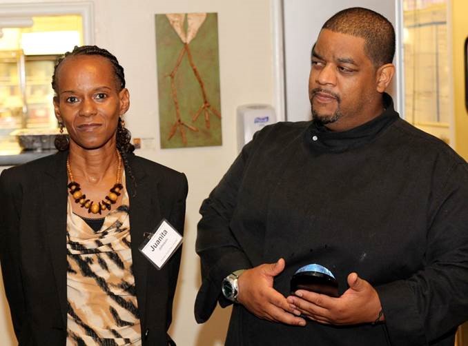 Juanita and Damion getting ready to present her with the award
